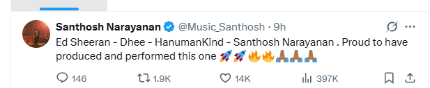 எட் ஷீரன், ஹனுமேன் கைண்ட், தி – சாந்தோஷ் நாராயணனின் சர்வதேச கொலாபரேஷன்!